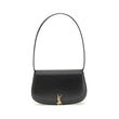 The Voltaire mini Shoulder Bag by Saint Laurent is an elegant crescent-shaped bag crafted from calfskin with a lightly polished finish. Bronze-colored metallic parts add a warm, vintage touch, while the Cassandre magnetic zipper closure provides security and practicality. Inside, a flat pocket completes the functionality of this compact and refined accessory.