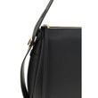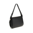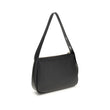 The Romy Shoulder Bag by Tory Burch is crafted from black pebbled leather, combining elegance and practicality. It features an adjustable handle with gold-tone metal details and logo, a zip closure with leather pull, and a main compartment with an open flat pocket to organize your essentials.