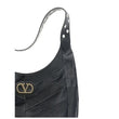 The Hoboho Shoulder Bag by Valentino Garavani in nappa leather with a chevron motif is defined by its refined patchwork construction in glossy and matte finishes. The model is enriched with the VLogo Signature metal detail in antique brass finish and a leather strap adorned with palladium-finish studs, adjustable to be worn on the shoulder or crossbody. A nappa leather lining completes the design with artisanal finesse.
