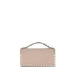 Valentino Garavani grained leather Wallet with top handle and chain shoulder strap for a dual mode of use. It features the iconic Rockstud studs applied on the perimeters and front flap closure equipped with a magnetic button. Inside, a single compartment with zippered welt pocket to better organize your essentials with style and functionality.