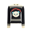 Valentino’s Le Chat De La Maison Sweater is made of soft knit with a ribbed crew neck that emphasizes the line. It features frontal embroidery with the words “Le Chat de la Maison” that gives it a distinctive and refined touch. The cuffs and hem, also ribbed, ensure a snug and comfortable fit, perfect for a casual yet elegant look.