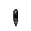 Versace’s La Medusa slingback Pumps combine elegance and iconic identity in a refined design. Crafted from glossy calfskin, they feature a pointed silhouette and a low heel that makes them comfortable and versatile. The adjustable ankle strap ensures a secure fit, while the three-dimensional La Medusa accessory on the front adds a distinctive touch typical of Versace’s bold style.
