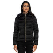 Yes Zee short down jacket with removable hood, metallic gold zip